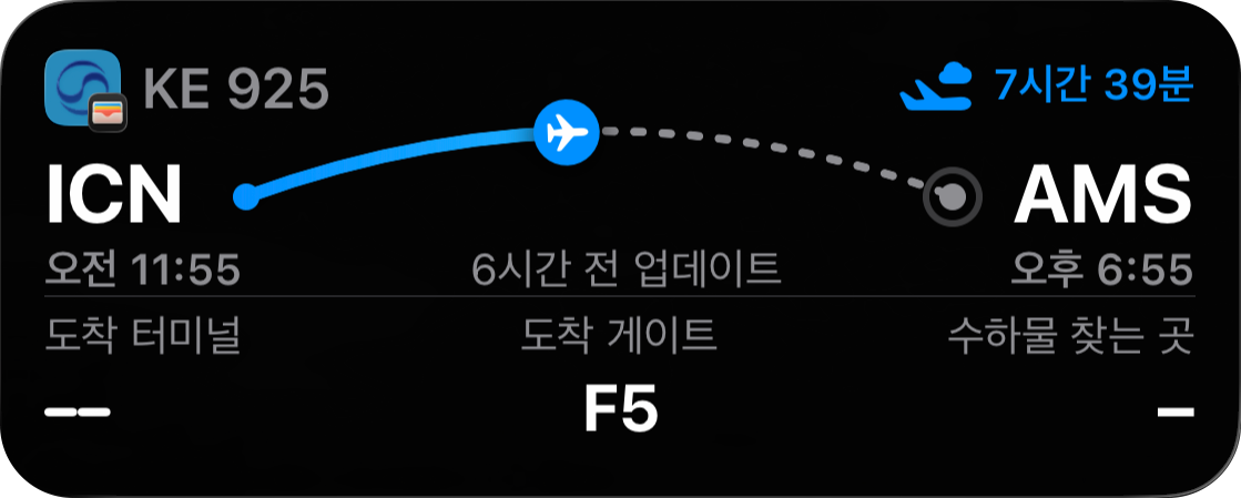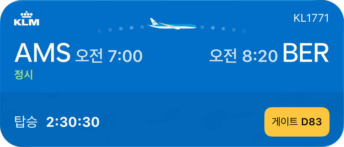 - KLM (Pre-flight Focus): '탑승 전 카운트다운'과 '게이트 정보'를 강조한다. 환승이 잦은 노선의 특성을 반영하여, 정해진 시간 내에 움직여야 하는 승객에게 필요한 긴박한 정보를 우선 배치했다.