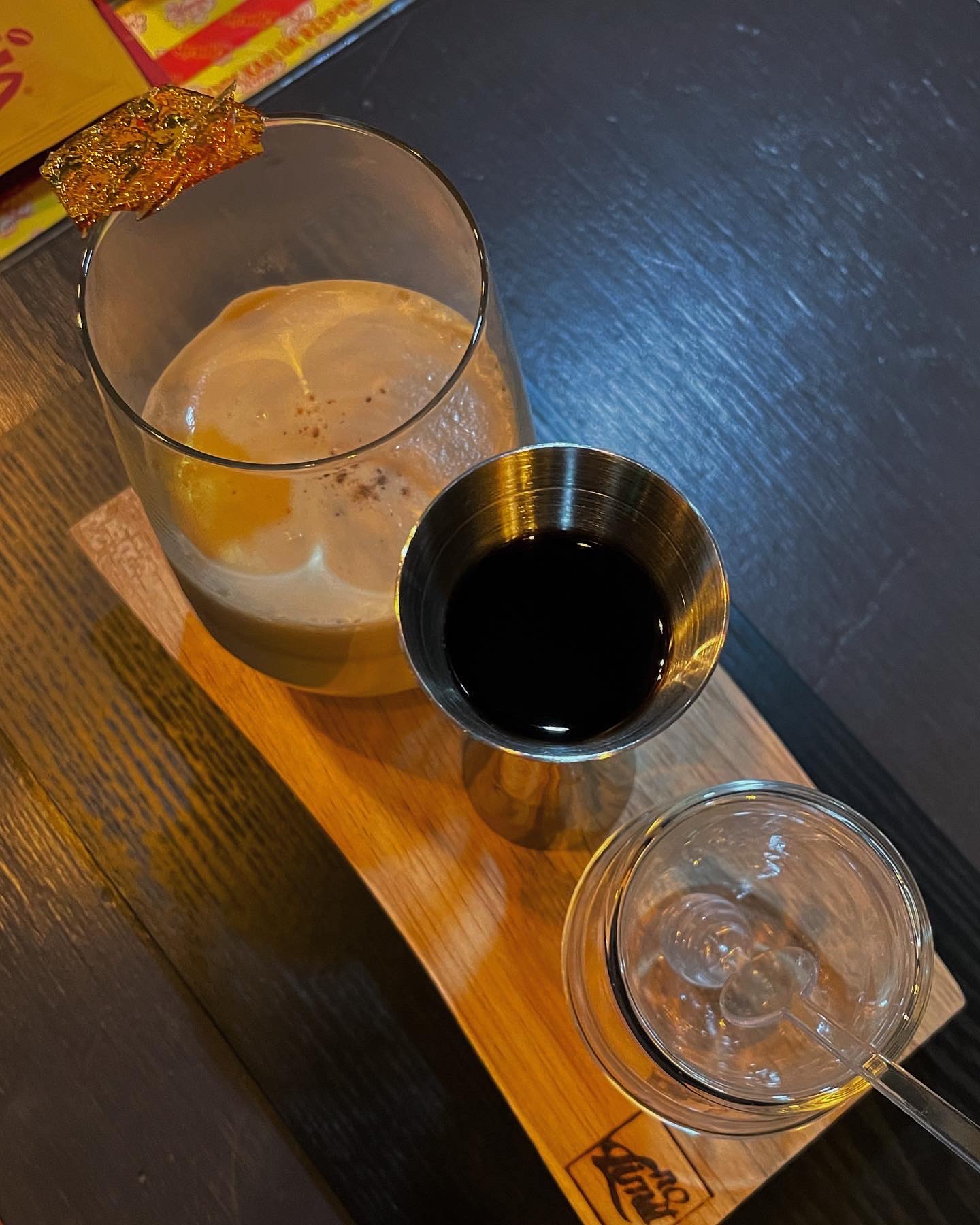 그리고 지거에 깔루아를 담아줘서 기호에 맞게 스스로 넣을 수 있도록 안내된다.